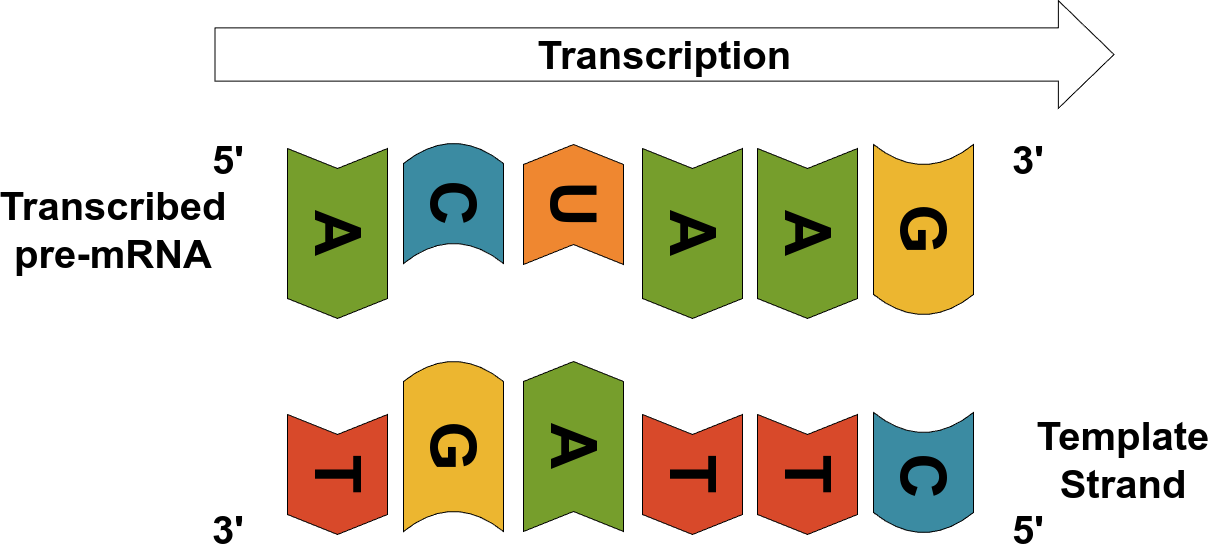 Notice the “m7G” cap prepended to the RNA strand. It’s one of the modifications mRNA undergoes to allow export from the nucleus to the cytoplasm.